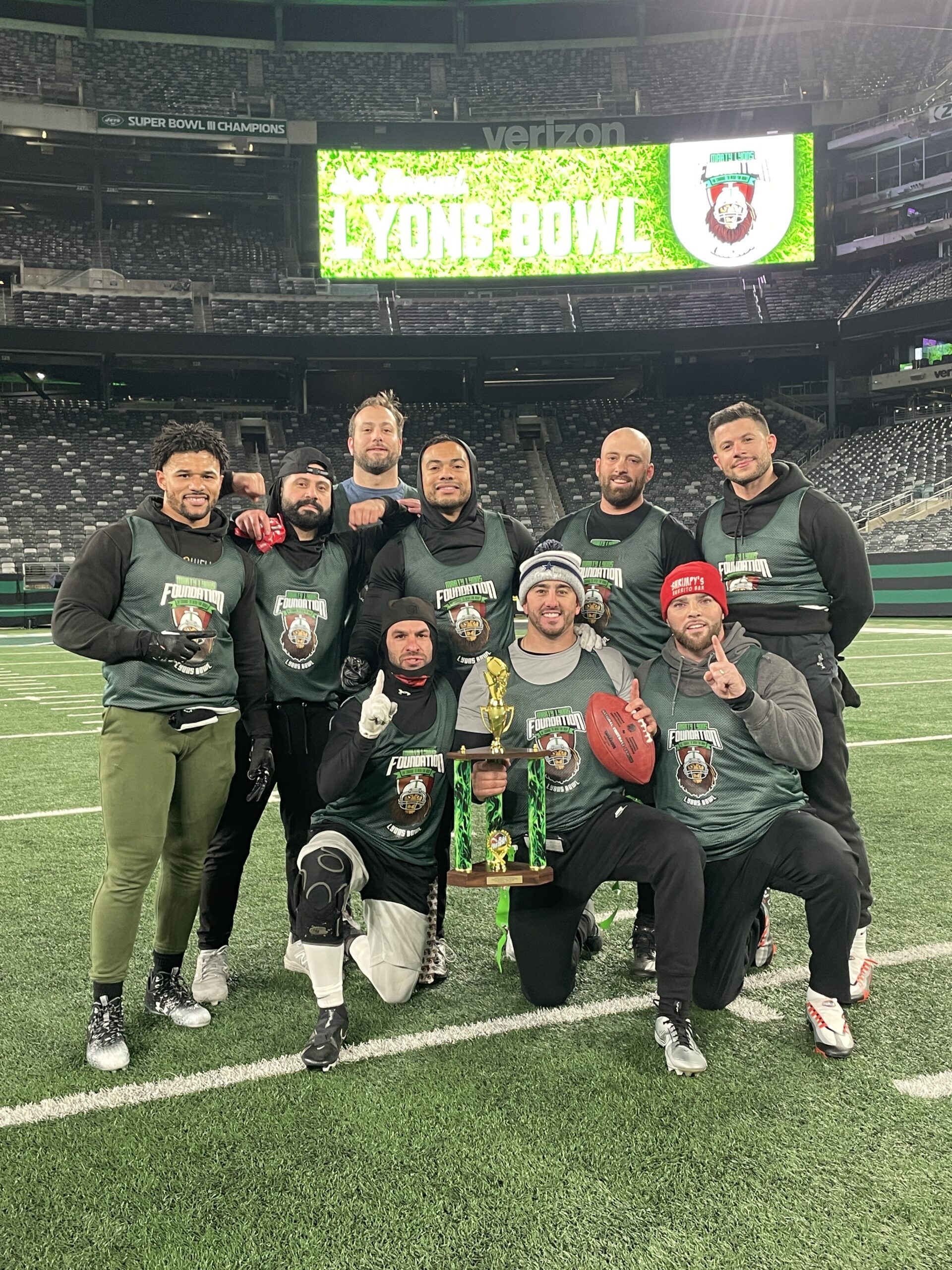 Then it was GAME TIME! 12 teams battled it out through the frigid conditions on the same field where both the NY Jets & Giants play and where Super Bowl XLVIII was played…all while working their way through a double-elimination tournament…but only one team would end up with the championship…TEAM SHRIMPY’S!!!