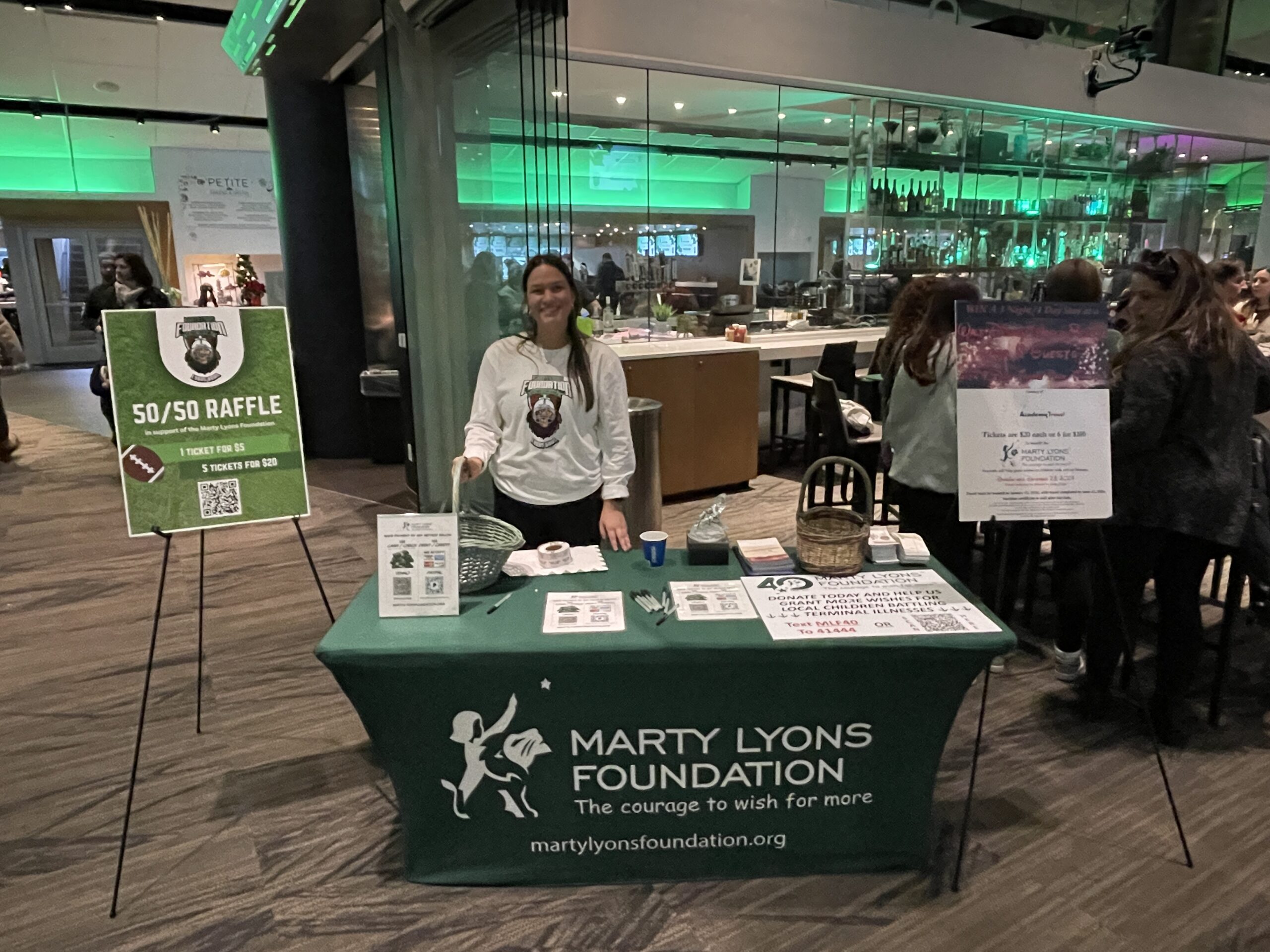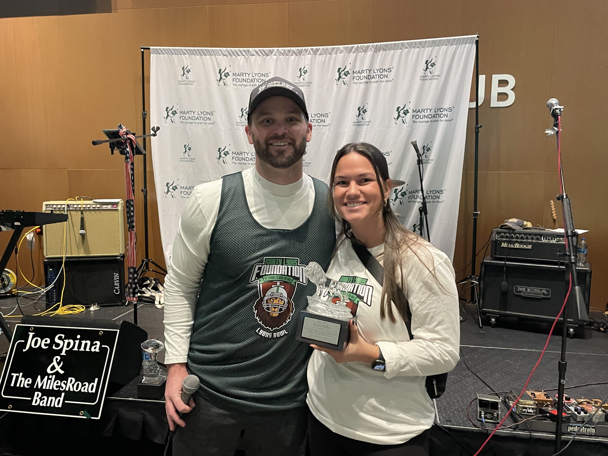 The day began with food and beverages being served to over 200 participants and guests inside the exclusive EY Coachs Club, along with great live music provided by Joe Spina & The Miles Road Band. Just before games began, MLF YPC Chairman, Jesse Lyons, greeted everyone in attendance…followed by a welcome from our Co-Founder and Chairman, Marty Lyons. From there, they both distributed two awards to a couple of special people…YPC members, Rachel Keller (Magic Maker) and Jake Brown (YPC M.V.P.)…for all of their hard-work and continued support of our Mission.